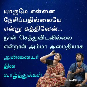 கண்கள் இல்லாமல் ரசித்தேன் காற்று இல்லாமல் சுவாசித்தேன் கவலை இல்லாமல் வாழ்ந்தேன் என் தாயின் கருவறையில் மட்டும் அன்னையர் தின நல்வாழ்த்துக்கள்