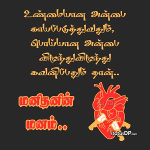 என் மனதை கல்லாக்கிக் கொண்டு உன்னைவிட்டு விலகி செல்கிறேன். பிடிக்காமல் இல்லை. என் அன்பு உனக்கு தொல்லையாக மாறிப் போனதால்.