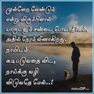 முன்னேற வேண்டும் என்று விரும்பினால் யாருடனும் சண்டை போடாதீர்கள். அதில் நேரம் வீணாகிறது. நாயிடம் கடிபடுவதை விட, நாய்க்கு வழி விடுவதே மேல்..!