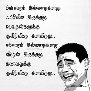 நாட்ல பாகுபலி மட்டும் தான் பொண்டாட்டி கூட சேர்ந்து எதிரியோடு சண்டை போடுறான். மத்தவனுக்கெல்லாம் பொண்டாட்டி கூட சண்டை போடவே நேரம் சரியா இருக்கு.
