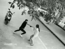 Children punching a man